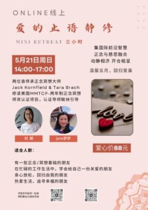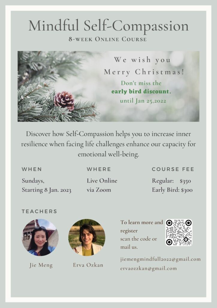 我和我的合作老师Erva将在2023年1月提供我们的第一轮英文授课的 “正念/静观自我关怀 “在线8周课程。由于开始日期越来越近,我们开始接受申请。
